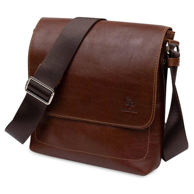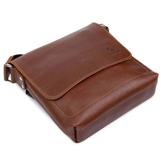 Добротна чоловіча сумка з натуральної шкіри. Має гладку глянсову фактуру і красивий коричневий колір. Всередині є містке відділення на блискавці і кишеня для телефону. На задній і передній зовнішніх сторонах є кишені на блискавці. Упакована сумка в фірмовий чохол.