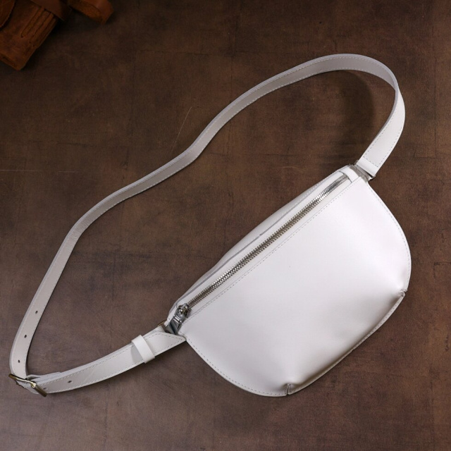 Чудова сумка на пояс для повсякденного використання або для подорожей. З такою сумкою Ваші руки будуть вільні, а телефон та інші цінні речі завжди при собі. Зроблено бананку з натуральної шкіри високого класу та підвищеної стійкості до зносу. Колір виробу – універсальний білий, фактура – гладка та приємна на дотик.