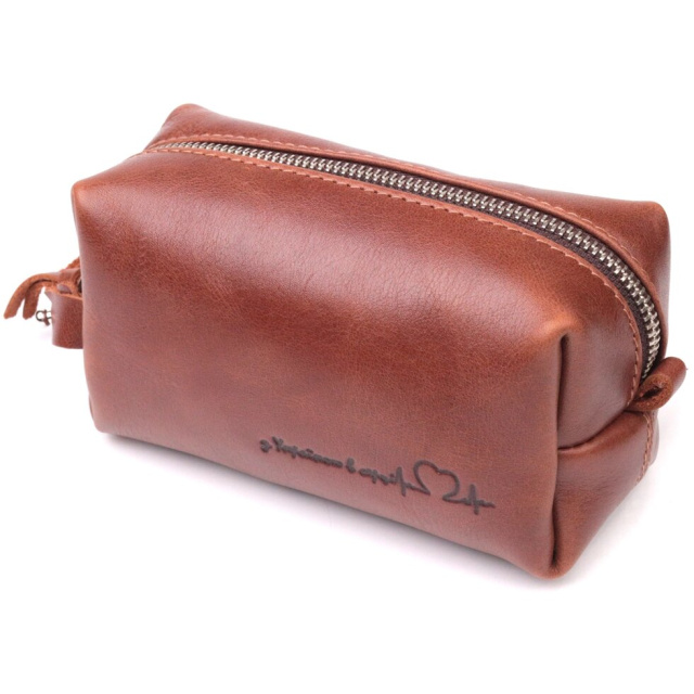 Найзручніша чоловіча косметичка з натуральної гладкої шкіри, з патріотичним тисненням на лицьовій стороні “З Україною в серці”. Аксесуар призначений для зберігання найнеобхідніших дрібниць, які можуть стати в нагоді будь-де. без особливого дискомфорту, аксесуар можна переносити в руці за спеціальну ручку, упакована дана косметичка в красиву фетрову сумочку.