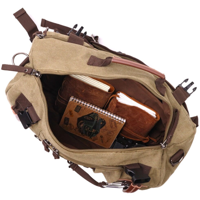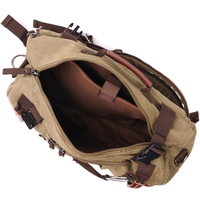 Багатофункціональний рюкзак трансформер із щільного текстилю. Модель можна носити як сумку, і рюкзак. Аксесуар має бічні регулятори і може розширюватися обсяг залежно від забитости сумки. Виріб має достатній об'єм кишень, щоб Ви легко помістили всі свої особисті речі. Сумка виконана з якісного та міцного текстилю. Виріб стане гідною заміною, якщо ви не бажаєте переплачувати за моделі з натуральної шкіри.