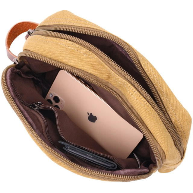 Зручна текстильна барсетка невеликого розміру. Аксесуар має два основні відділення, внутрішню кишеню на блискавці та зовнішню кишеню на блискавці. У барсетку вміщається чимало речей, а наявність кишень допоможе вам ідеально їх розкласти. У поєднанні з якісною фурнітурою та міцною підкладкою барсетка прослужить Вам не один рік. Виріб стане чудовим подарунком для будь-якого чоловіка.