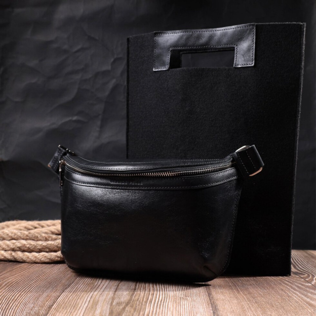 Чудова поясна сумка з натуральної шкіри, яка відмінно підійде як жінкам, так і чоловікам. Складається модель з одного просторого відділення, в якому знаходиться кишеня відкритого типу та кишені на тильній стороні зовні. Вона виглядає дуже сучасно, завдяки красиво підібраній фурнітурі кольору срібла, елегантним рівним рядкам та якісній шкірі, що переливається на сонці. Ідеальний подарунок для близької людини. Сумочка упакована у якісний фірмовий повстяний чохол.