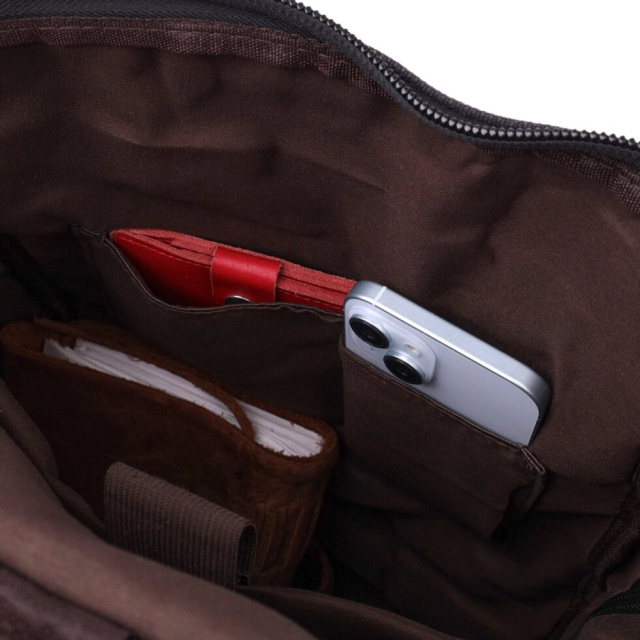 - всередині: дві накладні кишені для мобільного та ущільнена кишеня для ноутбука на липучці;
