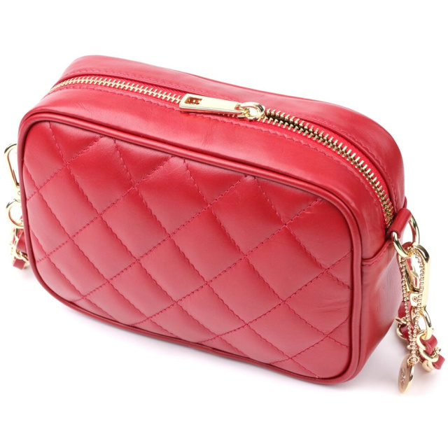 Компактна сумка з натуральної шкіри у насиченому червоному кольорі. Стигана ромбами поверхня підкреслює витончений дизайн і додає аксесуару елегантності. Одне основне відділення дозволяє зручно розмістити все необхідне, зберігаючи компактність та легкість. Ручка-ланцюжок довжиною 135 см робить сумку універсальною: її можна носити як на плечі, так і через плече. Така деталь надає аксесуару сучасного характеру і завершує образ стильної жінки.