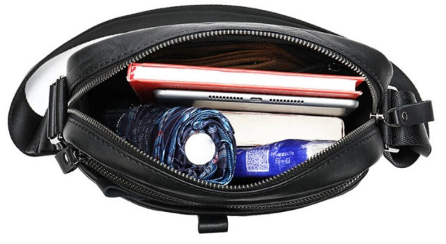 Компактна чоловіча сумка з натуральної шкіри класичного чорного кольору і горизонтального формату. Всередині - коричнева текстильна підкладка. Доповнено виріб фурнітурою сріблястого кольору з міцного металу. Сумка стане ідеальним помічником чоловікові на кожен день. Виріб створено для чоловіків, які цінують якість і компактний розмір. З нею буде також дуже зручно ходити на роботу. Виріб стане чудовим подарунком для будь-якого чоловіка. У комплекті до сумки йде пилозахисний чохол. На лицьовій стороні сумка доповнена шкіряним хлястиком.