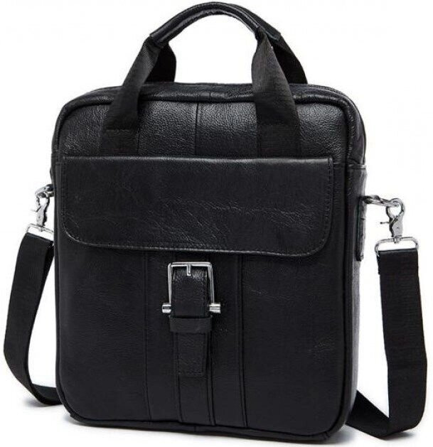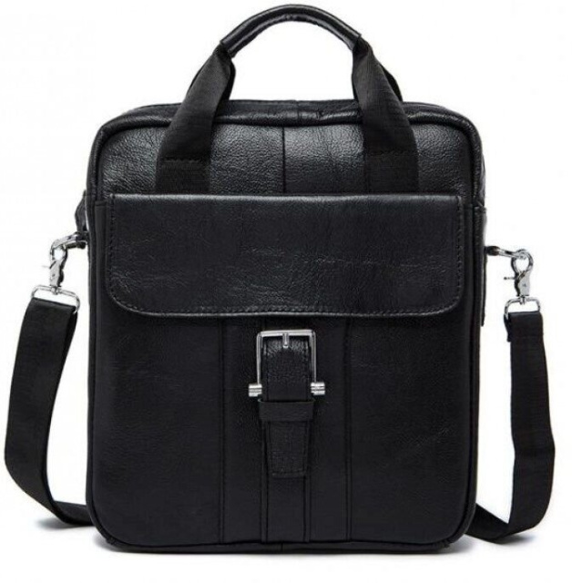 Сучасна чоловіча сумка через плече. Аксесуар виконаний з натуральної високоякісної зернистої шкіри. Колір фурнітури: срібло. Сумка надійно прошита міцною ниткою. Шви - рівні, акуратні.