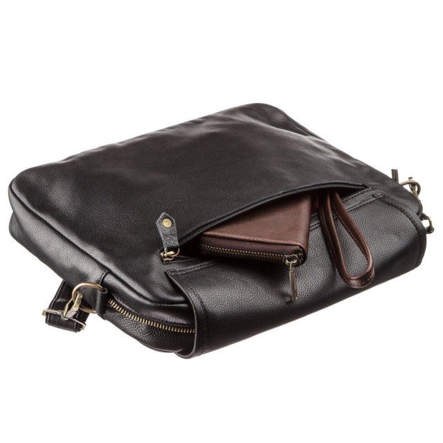 Солідна сумка для роботи або навчання через плече. Аксесуар виконаний з натуральної шкіри типу флотар, яка популярна своєю зносостійкістю і невибагливістю у догляді. На такій шкірі не видно подряпин і потертостей і вона є досить практичною. В аксесуар ви зможете помістити планшет або невеликий ноутбук. При бажанні ручку ви можете зняти. Сумка також доповнена якісною фурнітурою з міцного металу. Ручка на плече текстильна зі шкіряною вставкою, що підкреслює високу якість виробу. На лицьовій стороні аксесуара тиснений логотип бренду з рівною червоною стрічкою.