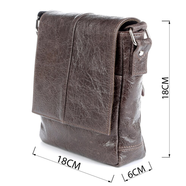 Оригінальна чоловіча сумка з натуральної високоякісної вінтажної шкіри. Колір фурнітури: срібло. На задній зовнішній стороні знаходиться відділення на блискавці, в яке можна помістити речі першої необхідності. Сумка закривається за допомогою клапана на двох прихованих магнітах і блискавкою. Під клапаном розташована накладна кишеня. Сумка носитися через плече за допомогою регульованого текстильного плечового ременя. Такий аксесуар є чудовим рішенням для подарунка чоловікові до будь-якого свята.