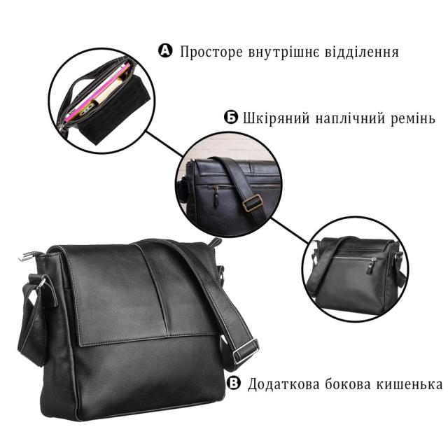Матеріал: натуральна шкіра високої якості; Колір: чорний; Розміри (ШхВхГ, см): 29х22х8.5; Країна виробництва: Україна. Якщо Ви шукаєте...