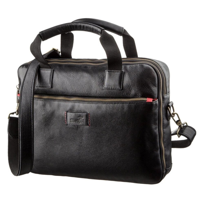 Сумка для ноутбука діагоналлю 14 дюймів і менше. Виріб виготовлено з натуральної шкіри найвищої якості. Два відділення сумки допоможуть вам розмістити в неї не тільки ноутбук, але і необхідні папери або документи. Сумка буде прекрасним помічником на зустрічах або відрядженнях, а також на кожен день. Усередині сумки червона текстильна підкладка і знімний текстильний ремінець зі шкіряною вставкою. На лицьовій стороні тиснений логотип бренду з червоною стрічкою.
