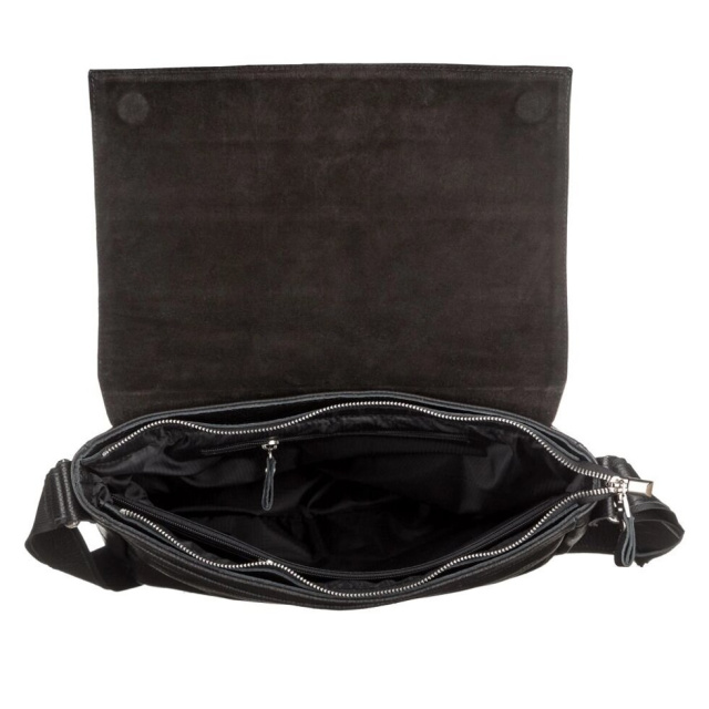 Закривається сумка з допомогою клапана з магнітами. При відкритті глибока накладна кишеня. Основне відділення закривається блискавкою і розділене кишенею-перегородкою, саме по собі дуже містке, в нього можна покласти предмети формату А4 і навіть невеликий нетбук або габаритний планшет. В основному відділенні на задній стінці є кишеня на блискавці, на передній - кишеня для телефону або портмоне.