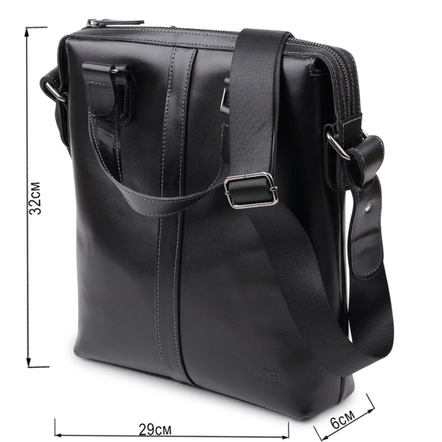 Практична чоловіча сумка з натуральної шкіри з відмінними експлуатаційними характеристиками і показниками. Усередині одне просторе відділення, яке розділене кишенею-перегородкою. На зовнішній стороні сумки теж є дві кишені на блискавці, причому одна з них дуже майстерно сховано. Така сумка просто знахідка для сучасних ділових людей.