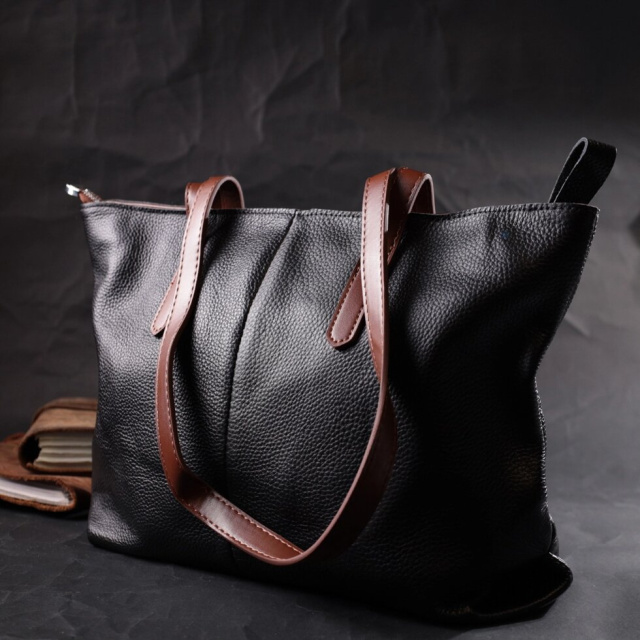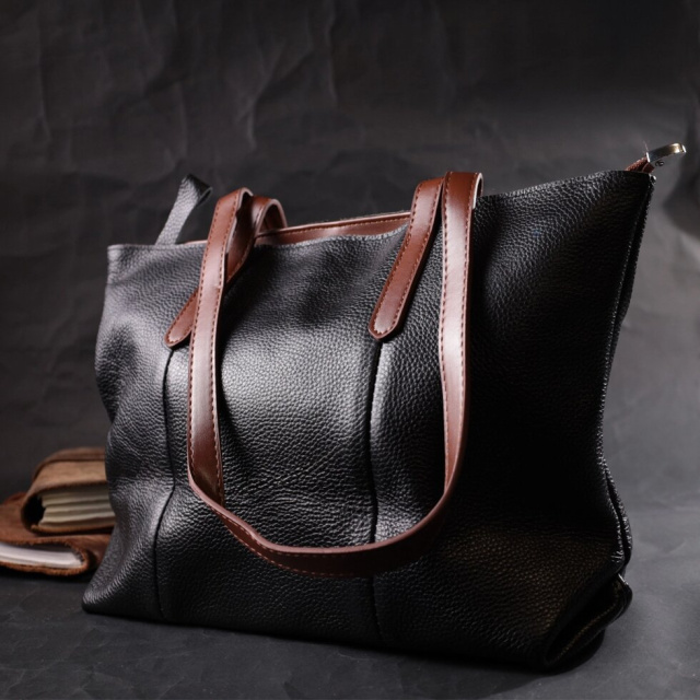 Жіноча містка сумка з натуральної шкіри з високим показником якості та зносостійкості. Виріб практичний так як його розміри дозволяють поміщати документи формату А4. Аксесуар складається з основного відділення, що закривається на блискавку, всередині якого знаходиться кишеня перегородка на блискавці, потайна кишеня на блискавці та кишеня відкритого типу. Носити сумку можна на плечі та в руках, для цього є дві довгі шкіряні ручки. У виробі використано якісну фурнітуру срібного кольору.
