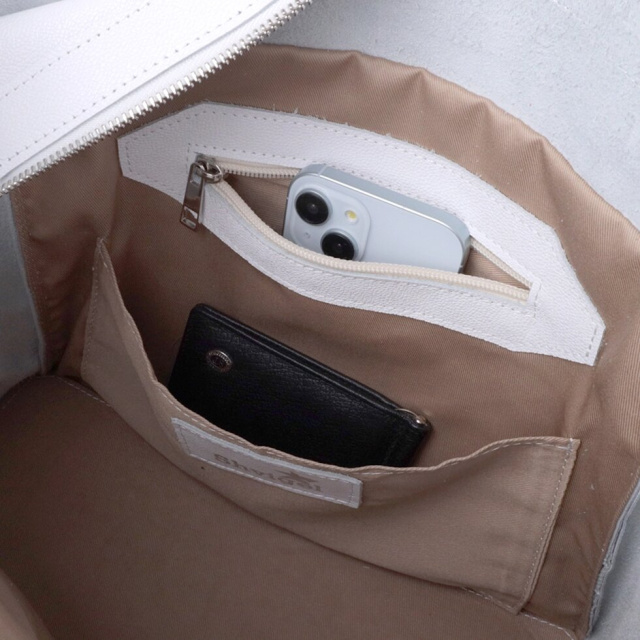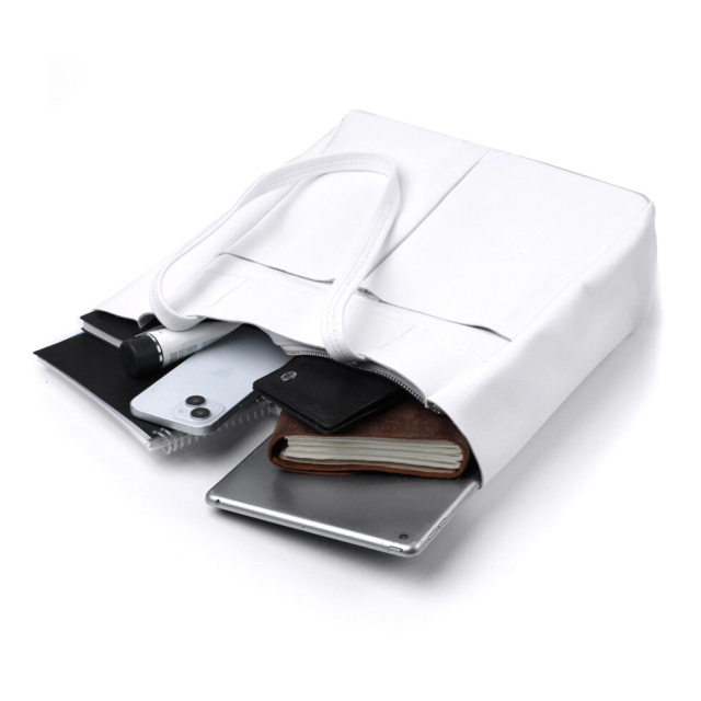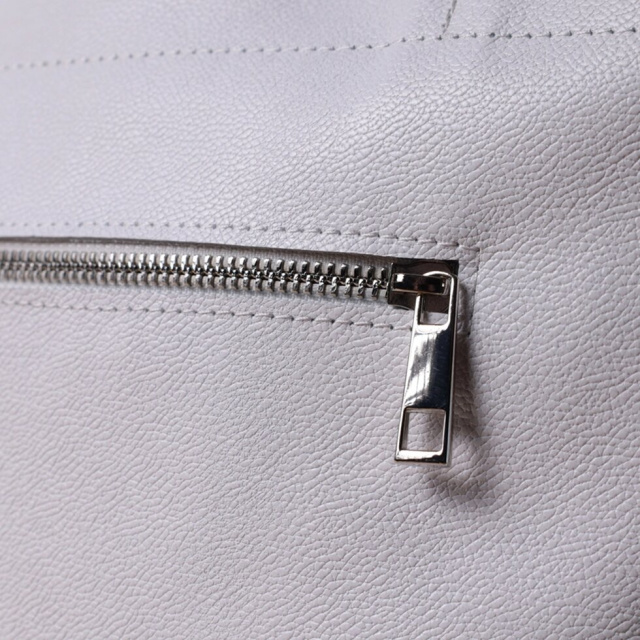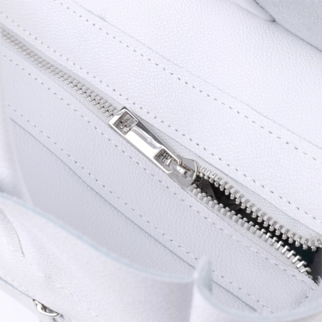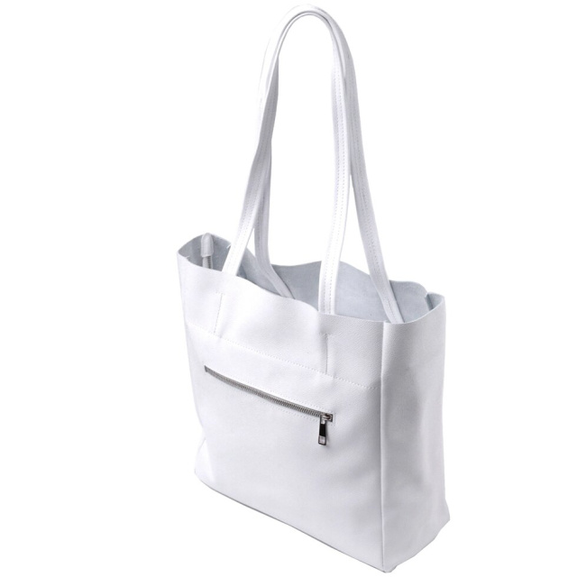 Містка жіноча сумка для тих, хто завжди носить із собою величезну кількість речей. Таку сумку можна спокійно носити на роботу, в неї добре поміщаються всі особисті речі і папки з документами. Також таку модель зручно брати із собою у подорожі та виглядати завжди стильним та елегантним. Колір моделі – білий, фактура – зерниста. Матеріал виконання – натуральна шкіра з високими показниками стійкості до зношування. Для перенесення використовуються дві міцні надійні ручки. Сумка має знімне ущільнене дно прямокутної форми, щоб надати за бажанням більш чітких форм аксесуару. Фурнітура срібного кольору – стійка не змінює свій колір у процесі носіння. Аксесуар чудово поєднується з усіма стилями в одязі та може стати чудовим подарунком на будь-яке свято.