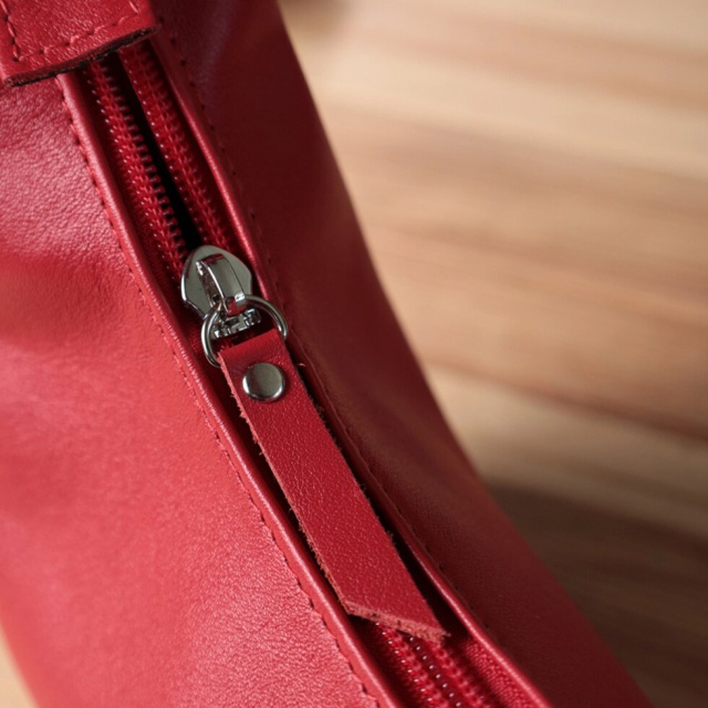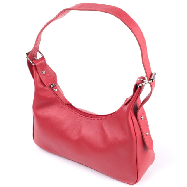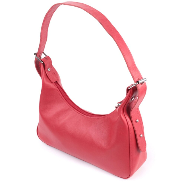Яскрава сумка для тих, хто любить красивий дизайн без зайвих деталей. Така сумка у модному світі має назву – сумка багет. Це невелика сумка з коротким ременем, яку зручно носити під рукою, вона набула своєї популярності завдяки своєму універсальному дизайну та незвичайній формі. Колір виробу модний червоний, фактура гладка з глянцевим блиском. Матеріал виконання – натуральна шкіра з високими показниками якості. Відмінний варіант сумки на кожен день, адже вона не тільки приваблива зовні, але й оснащена розумною системою внутрішніх відділень, що дозволить організувати простір усередині. Модель дуже стильна та елегантна, виготовлена з якісних матеріалів та добре тримає форму.