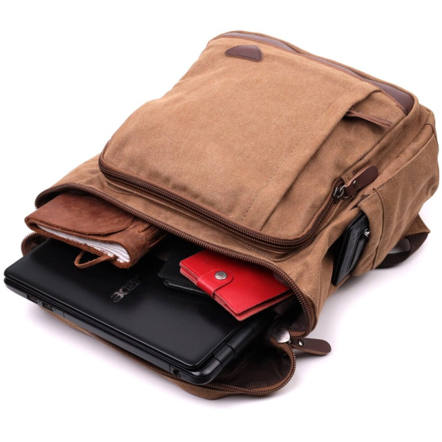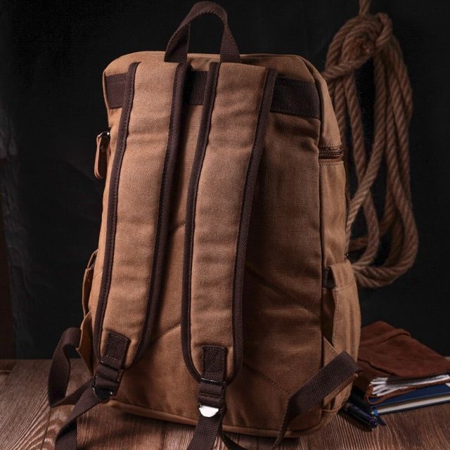 Великий не важкий рюкзак із текстилю, пісочного не маркого кольору. Рюкзак дуже місткий. Виріб має дуже практичний функціонал і відмінно підійде як для щоденного використання, так і для подорожей та відряджень. Усередині – якісна підкладка. У рюкзак поміщається ноутбук. Виробництво – фабричний Китай. Завдяки якісній фурнітурі та матеріалам виконання рюкзак прослужить довго не втрачаючи первісного вигляду. Текстильний рюкзак – бюджетне рішення для вашого комфорту.