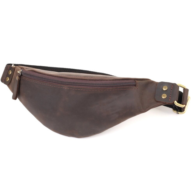 Чоловіча сумка-бананка з вінтажної коричневої шкіри стиль і практичність в одному аксесуарі. Ця сумка-бананка виконана із міцної натуральної вінтажної шкіри, яка надає їй характерного теплого відтінку та благородної текстури. Глибокий коричневий колір підкреслює природну красу матеріалу і робить виріб особливо виразним.