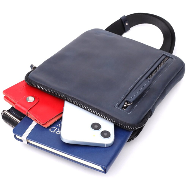 Зручна чоловіча вертикальна сумка SHVIGEL виготовлена з натуральної вінтажної шкіри. Лаконічний дизайн у поєднанні з функціональною організацією простору робить її зручним аксесуаром для повсякденного використання.
