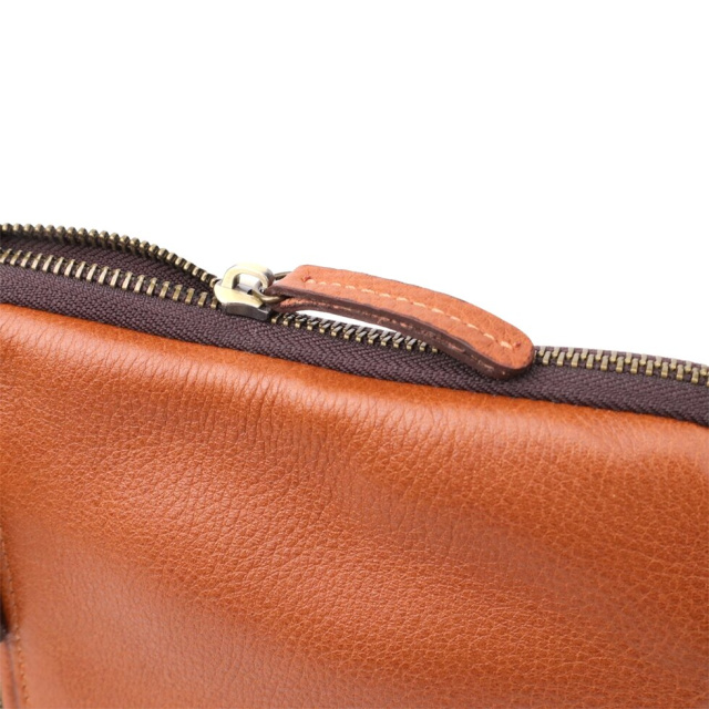 Ця чоловіча вертикальна сумка від українського бренду SHVIGEL виконана із натуральної зернистої шкіри теплого рудого відтінку. Структурована фактура надає виробу солідного і благородного вигляду, а фірмове тиснення логотипу підкреслює справжність і стиль бренду.