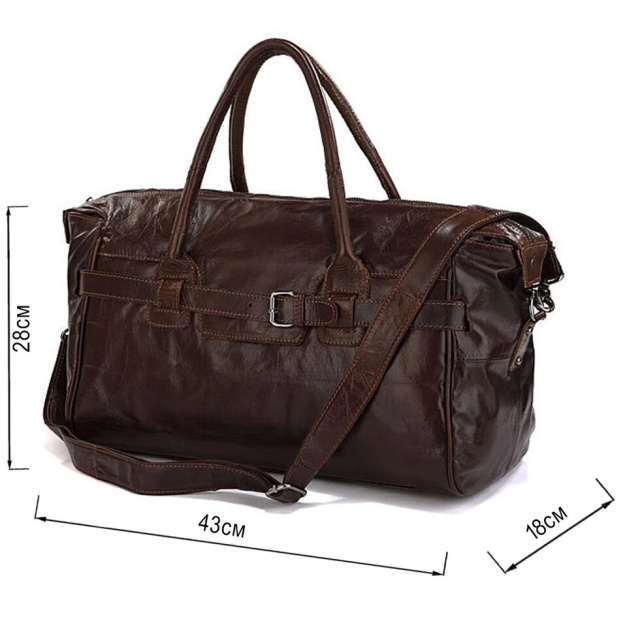 Високоякісна дорожня сумка з відмінної натуральної шкіри. Сумка має зручні шкіряні ручки і плечовий ремінь. Закривається сумка за допомогою блискавки. Всередині є одне велике відділення, потайна кишеня на блискавці, дві невеликі накладні кишені. На дні сумки є ніжки. Сумка дуже практична, підійде для нетривалих відряджень і подорожей. Даний шкіряний саквояж має надзвичайний зовнішній вигляд і прекрасний дизайн. Така шкіряна дорожня сумка зможе підкреслити статус свого власника. Сумка підходить як чоловікам так і жінкам.