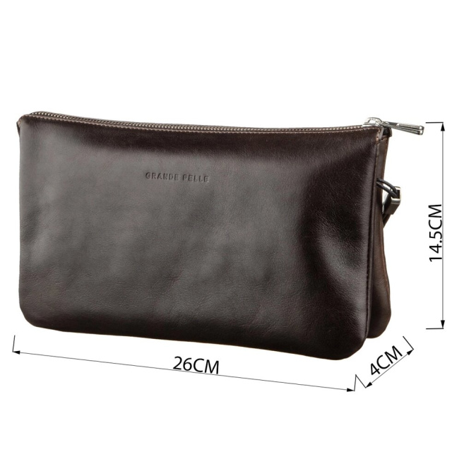 Барсетка для чоловіків виготовлена з італійської натуральної шкіри. Модель виглядає дуже оригінально і солідно. Барсетка ідеально доповнить будь-який ваш образ. Виріб з натуральної шкіри проноситься набагато довше, ніж зі шкірозамінника або текстилю. Доповнена барсетка якісної європейської фурнітурою сріблястого кольору. З такою барсеткою ви однозначно не залишитеся без компліментів на свою адресу. Виріб також можна носити на зап'ясті за допомогою знімного ремінця. Барсетка упакована в повстяний чохол чорного кольору. Аксесуар буде прекрасним подарунком для будь-якого чоловіка.