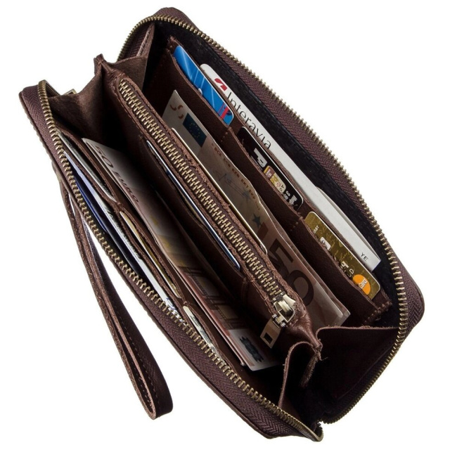 Дуже місткий шкіряний клатч з діловим дизайном. Ви можете носити клатч в якості своєї барсетки. У неї з легкістю поміститься все необхідне: Гроші, документи, паспорт, картки і монети. Просторі відділення і максимально продуманий функціонал роблять клатч особливо популярним серед чоловіків.