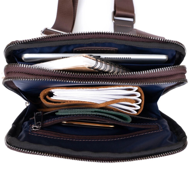 Практична сумка в зернистій шкірі "флотар" на два відділення. Виробництво - Україна. Зерниста шкіра зовсім невибаглива в догляді. Довго служить. На виробах з зернистої шкіри менше видно подряпини і потертості. Чоловічий планшет - ідеальний варіант сумки на кожен день і для зустрічей. У дизайні моделі немає ніяких зайвих деталей при цьому сумка виглядає дуже модно і стильно. На лицьовій стороні моделі тиснення у вигляді логотипу бренду. У дизайні сумки використовується вставки гладкої шкіри, що підкреслить ваше відмінне почуття стилю. Аксесуар доповнено текстильним незнімним ремінцем. Шкіряна сумка - кращий подарунок для будь-якого чоловіка. Якщо ви хочете таку ж модель в чорному кольорі - код для пошуку 11283, в вінтажній шкірі - 11285.