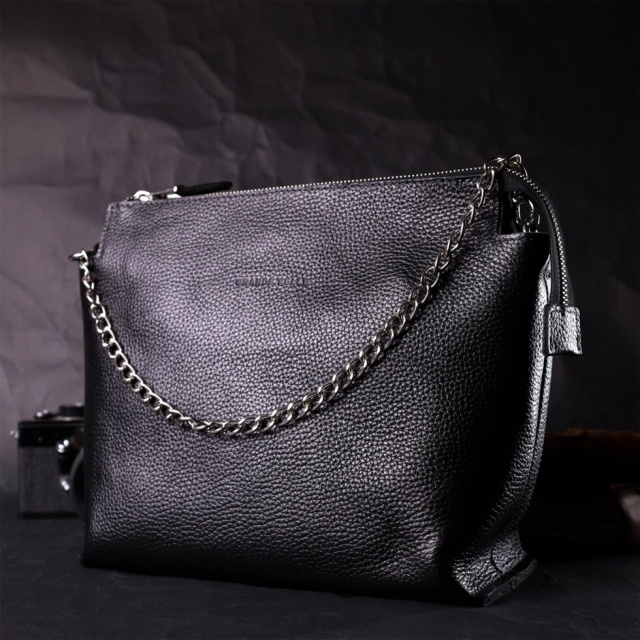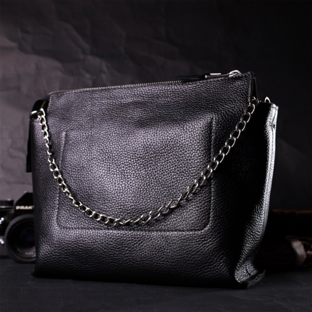 Чудова жіноча сумка із натуральної якісної шкіри. Аксесуар складається з основного відділення, що закривається на блискавку та кишені відкритого типу усередині. Виконана з міцної та зносостійкої натуральної шкіри. Носити цю сумку можна на плечі за допомогою регульованого текстильного ременя, а також в руках за допомогою ременя-ланцюжка, що знімається. Упакована ця сумка в гарний фірмовий чохол із ручками.