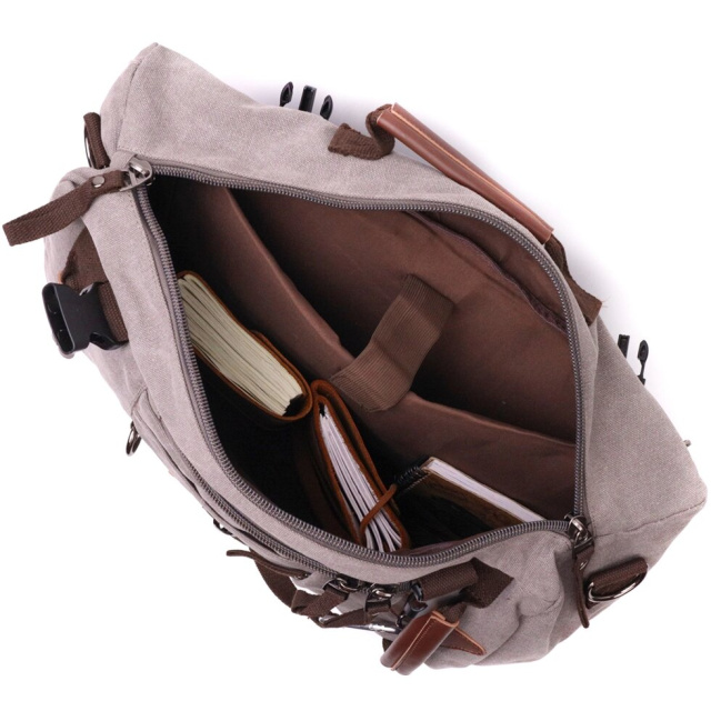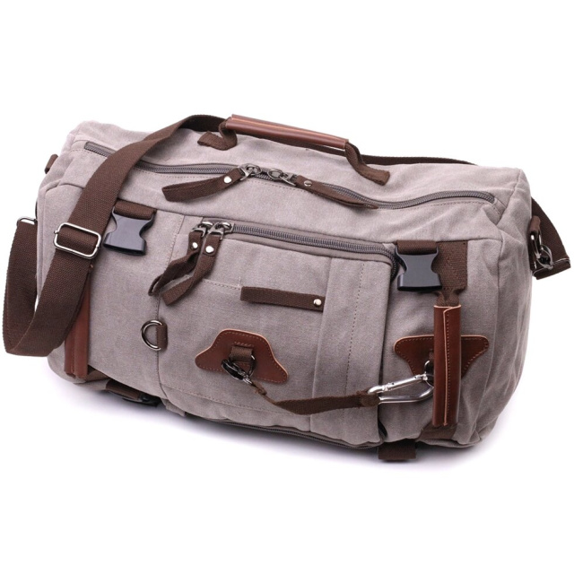 Рюкзак трансформер на всі випадки життя із щільного текстилю. Модель можна носити як сумку, і рюкзак. Аксесуар має бічні регулятори і може розширюватися обсяг залежно від забитости сумки. Виріб має достатній об'єм кишень, щоб Ви легко помістили всі свої особисті речі. Сумка виконана з якісного та міцного текстилю. Виріб стане гідною заміною, якщо ви не бажаєте переплачувати за моделі з натуральної шкіри.