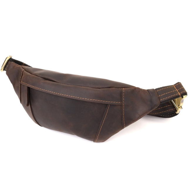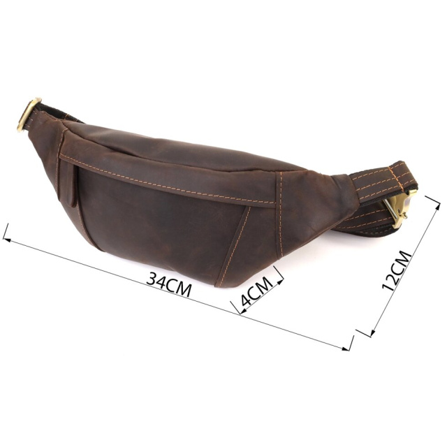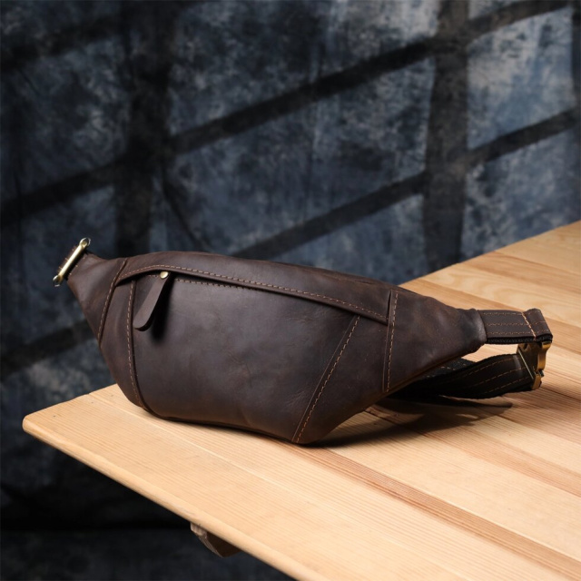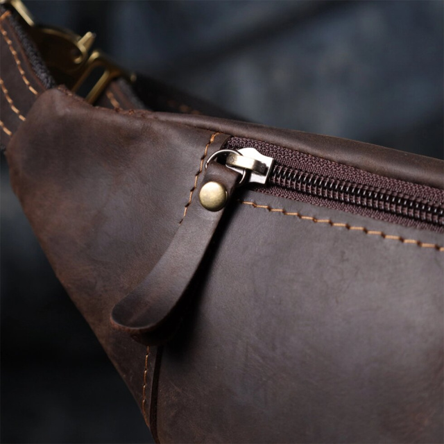 Виконана з міцної натуральної вінтажної шкіри, доповнена надійною металевою фурнітурою та ременем, що регулюється. Ідеальний дизайн робить її стильним рішенням для чоловіка. Лаконічний дизайн і увага до деталей роблять її універсальною: чи то поїздка, прогулянка містом чи ділова зустріч — аксесуар виглядатиме доречно в будь-якій ситуації.