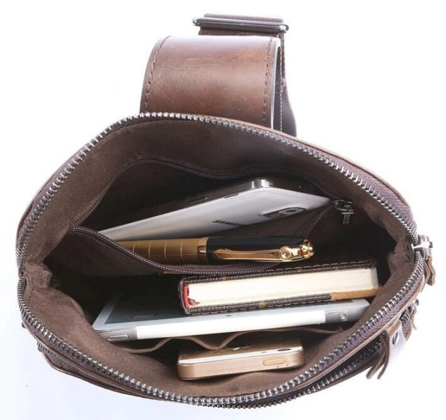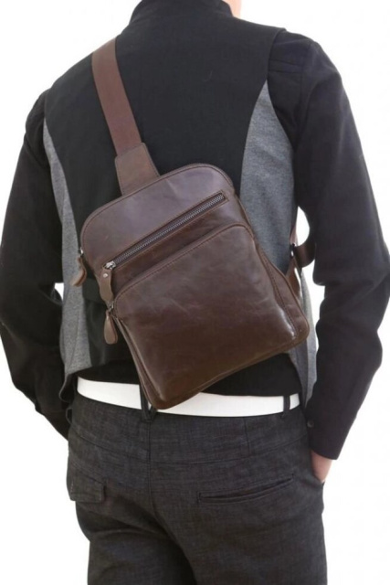 Невелика шкіряна сумка через плече. Колір фурнітури: чорне срібло. Сумка має компактні розміри, але при цьому вона досить практична і функціональна. Підкладка виробу виконана з текстильного матеріалу приємного на дотик. Колір підкладки: коричневий. Таку невелику сумочку можна піднести як подарунок школяру, так як в неї якраз поміщаються зошити.