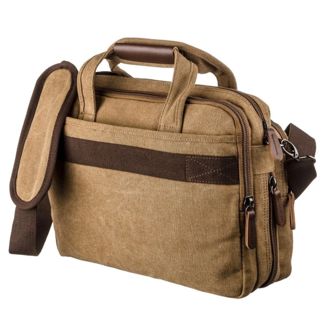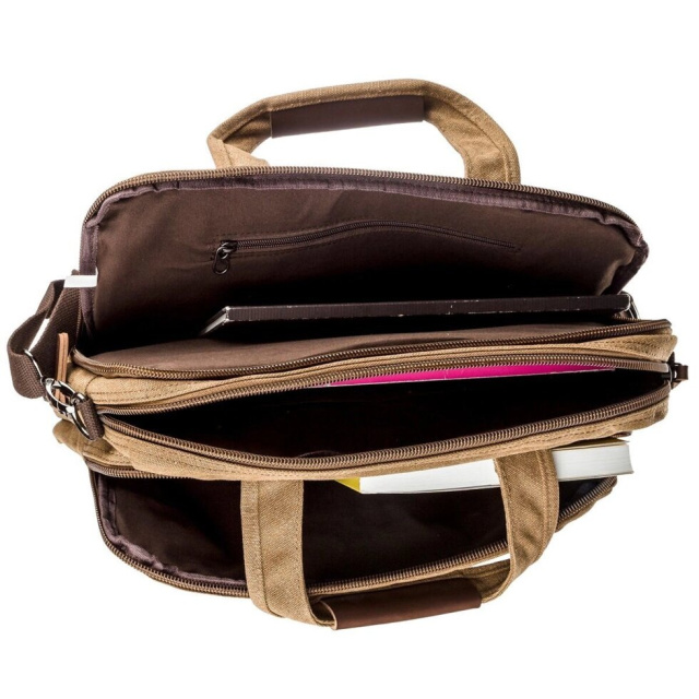 Текстильна сумка під ноутбук 15.6 дюймів. Дуже зручна і легка модель. Виріб ви можете носити як через плече, так і в руках. Сумка дуже щільна і проноситься далеко не один рік. Сумка має два відділення і легко вмістить в себе не тільки ноутбук, але і документи або інші необхідні речі. Модель доповнена різноманітними кишенями для вашої зручності. Текстильна сумка стане ідеальним варіантом для тих, хто шукає доступну модель для повсякденного життя і не хоче переплачувати.