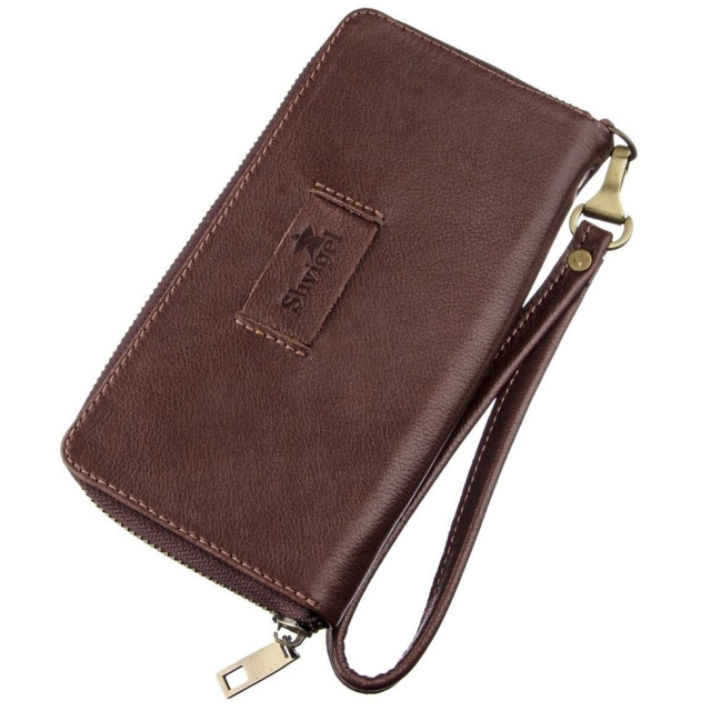 Стильний шкіряний клатч з натуральної шкіри найвищої якості. Дизайн клатча розроблений спеціально з урахуванням усіх побажань чоловіків. Виріб має дві містких кишені і кишеню на блискавці для монет або банкнот. Клатч досить місткий. Ви можете носити його замість барсетки. Такому аксесуару буде радий будь-який чоловік. На лицьовій стороні аксесуара тиснений логотип бренду.