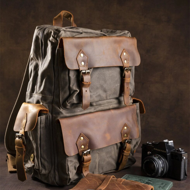 Місткий текстильний рюкзак в поєднанні з натуральною винтажною шкірою, який чудово комбінується зі стилем кежуал, спортивним або вінтажним. Якщо Ви шукали надійний рюкзак на безліч сезонів, то він перед вами. Рюкзак ідеально підійде під стандартний ноутбук. Такий рюкзак - мрія будь-якого мандрівника. Стильний рюкзак з якісного текстилю, з надійною фурнітурою, стане невід'ємним помічником, як у повсякденному житті, так і в подорожах.