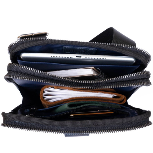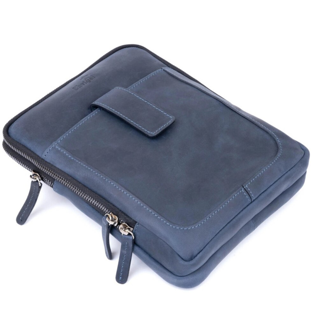 Практична сумка в матовій вінтажній шкірі на два відділення. Модель в оригінальному синьому кольорі. Для чоловіків, які завжди прагнуть бути в тренді. Виробництво - Україна. Вінтажна шкіра має дуже розкішний дизайн і користується особливою популярністю за свій "ефект старовини". Згодом на цій шкірі з'являються подряпини і потертості, що виглядає дуже вінтажно. Чоловічий планшет - ідеальний варіант сумки на кожен день по дизайну, функціональності і розмірам. У дизайні моделі немає ніяких зайвих деталей при цьому сумка виглядає дуже модно і стильно. Сумка виконана з урахуванням всіх модних тенденцій. На лицьовій стороні моделі тиснення у вигляді логотипу бренду. Аксесуар доповнено текстильним незнімним ремінцем. Шкіряна сумка - кращий подарунок для будь-якого чоловіка. Замовляйте дану модель як для себе, так і на подарунок.