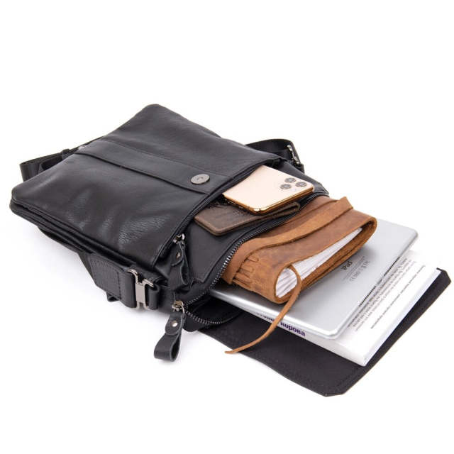 Тонка сумка в гладку шкіру для стильних чоловіків. Виріб виконаний з якісного матеріалу. Сумка не вимагає до себе особливо догляду і прослужить вам далеко не один рік. Виріб ви зможете носити на плечі за допомогою текстильного довгого ремінця. Підійде як для роботи навчання, так і ділових зустрічей або прогулянок. Сумка з класичним дизайном і прекрасним функціоналом. У комплекті йде пилозахисний чохол.