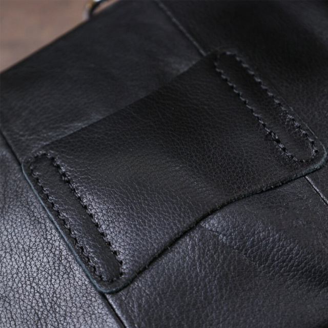 Чудова компактна сумка для чоловіків, які не люблять громіздких речей. Виконана дана модель з натуральної висококласної шкіри з гладкою приємною на дотик фактурою. Має містке основне відділення та дві додаткові кишені на зовнішній стороні. Сумку можна кріпити на пояс або носити через плече. Колір виробу – чорний.