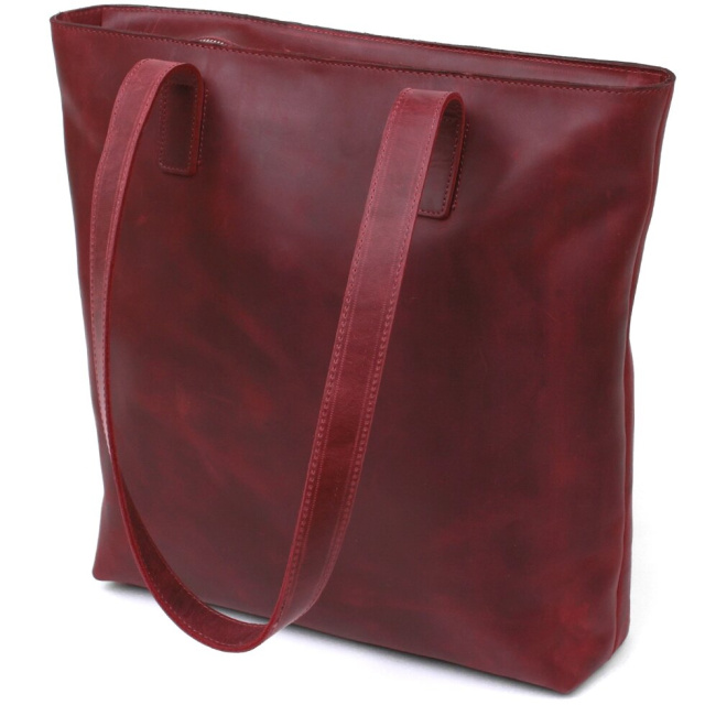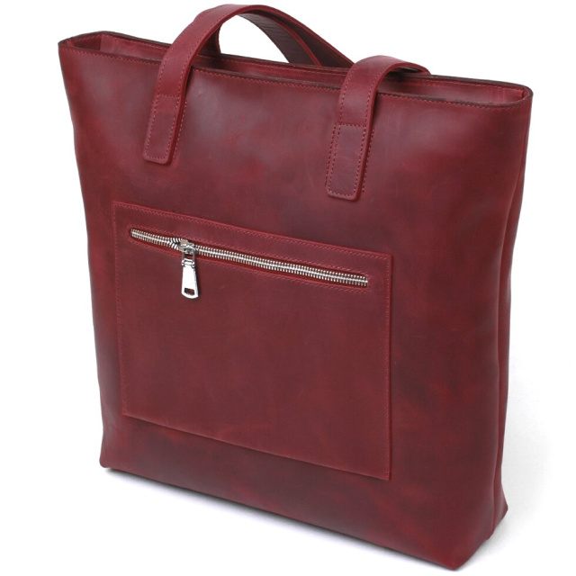 Стильна жіноча сумка-шоппер у чудовому красивому бордовому кольорі та в матовій фактурі. Виконано модель з натуральної шкіри високої якості та з відмінними показниками стійкості до зношування. Усередині є одне містке відділення на блискавці з потайною кишенею, на зовнішній стороні також є невелика кишеня на блискавці.