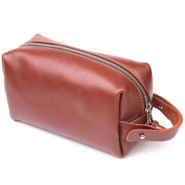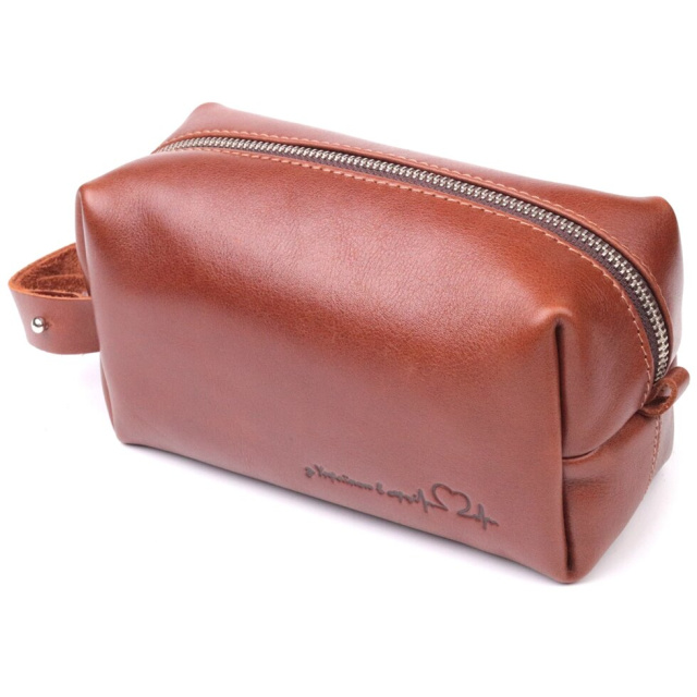Практичний чоловічий несесер, середнього розміру у гарній гладкій шкірі, з патріотичним тисненням на лицьовій стороні “З Україною в серці”. Має просторе відділення, в яке помістяться всі необхідні речі. Надійна фурнітура представлена у срібному кольорі. Для зручного перенесення аксесуарів є спеціальна ручка на бічній стінці. Запакована ця косметичка в красиву сумку фетрову. Вироби зі шкіри – чудова ідея подарунка на будь-які свята.