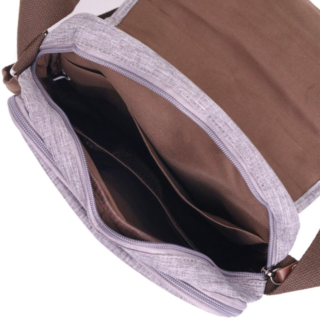 Практична чоловіча сумка із міцного текстилю. Аксесуар має два основні відділення, п'ять внутрішніх кишень різних розмірів, один із яких із сітки. У сумку поміститься досить багато речей, а наявність кишень допоможе вам ідеально їх розкласти. Сумка чудово поєднується зі стилем кежуал, а також мілітарі. Модель дуже практична та універсальна. Виріб стане чудовим подарунком для будь-якого чоловіка.