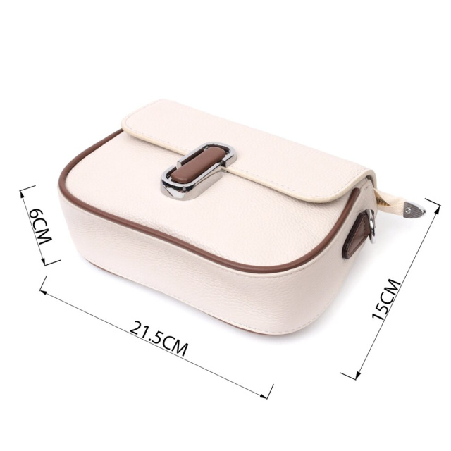 Неперевершена жіноча сумка з якісної натуральної шкіри, яка довго носиться і не втрачає свого первісного вигляду. Аксесуар складається з одного основного відділення всередині якого потайна кишеня на блискавці, кишеня відкритого типу та кишеня-перегородка, а зовні, на тильній стороні розташована кишеня на блискавці. Носити сумку можна в руці, на плечі і через плече, для цього є шкіряний ремінь, що знімається. У виробі використано якісну фурнітуру срібного кольору. Універсальний варіант сумки як на вечір так і як сумочка на кожен день.
