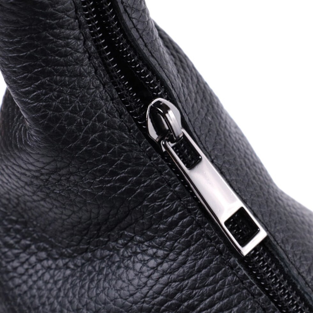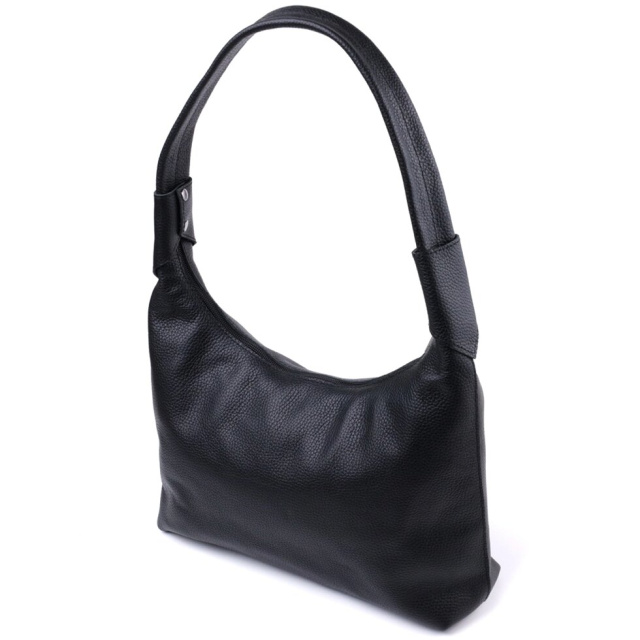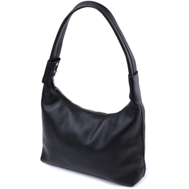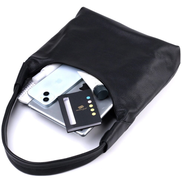 Фантастична містка жіноча сумка для тих, хто віддає перевагу строгому та лаконічному дизайну без надмірностей. Колір виробу – класичний чорний, а отже, він підійде під будь-який стиль одягу, фактура – зерниста. Матеріал виконання – натуральна шкіра з високими показниками якості. Носити сумку можна в руках і на плечі для цього передбачена міцна шкіряна ручка, також у виробі використано якісну фурнітуру срібного кольору.