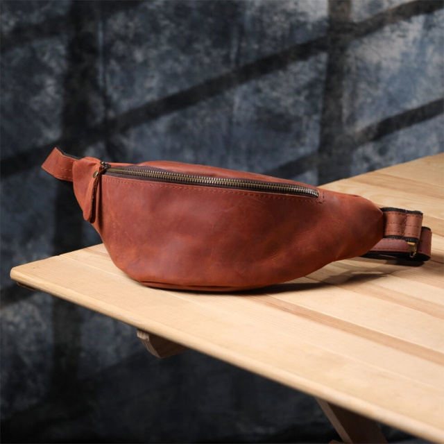 Сумка-бананка з натуральної шкіри Shvigel у рудому кольорі – теплий акцент та вінтажний стиль. Ця чоловіча сумка-бананка від українського бренду Shvigel це ідеальний аксесуар для тих, хто цінує функціональність і не боїться виділятися. Виконана з міцної натуральної вінтажної шкіри модель представлена у виразному рудому кольорі, який надає виробу особливий характер і тепло. Такий відтінок нагадує натуральний карамельний шкіряний тон, згодом він стає ще благороднішим.