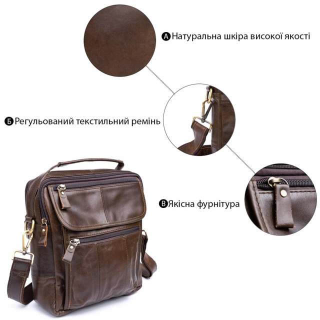 - текстильний ремінець зі шкіряною вставкою на плече (зйомний);