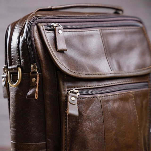 Розкішна чоловіча сумка, зручна в експлуатації і невибаглива в догляді. Красиво переливається на сонці. Сумку можна носити як в руці за шкіряну ручку, так і на плечі за допомогою зйомного ремінця. Модель доповнена міцною фурнітурою золотистого кольору. Виробництво - фабричний Китай високої якості. Сумка дуже довгий час залишається в ідеальному стані і має високу зносостійкість. Аксесуар упакований в пилозахисний чохол. Ідеальний варіант для подарунка близькій людині. Вибір стильних і солідних чоловіків.