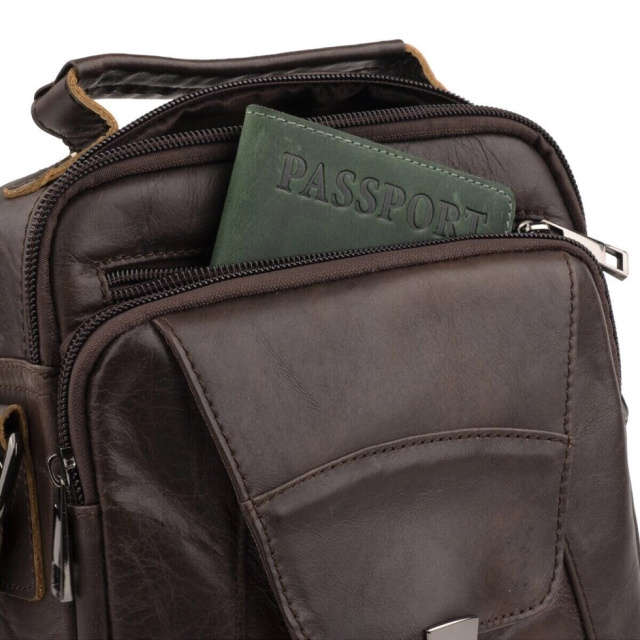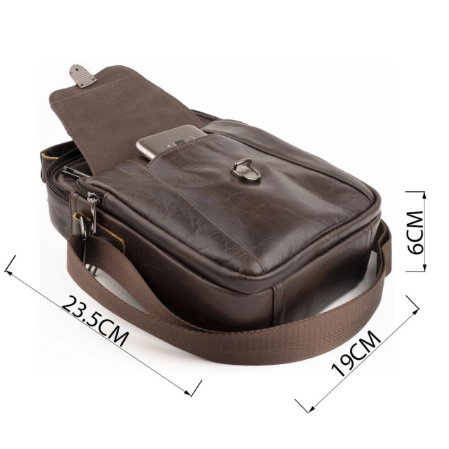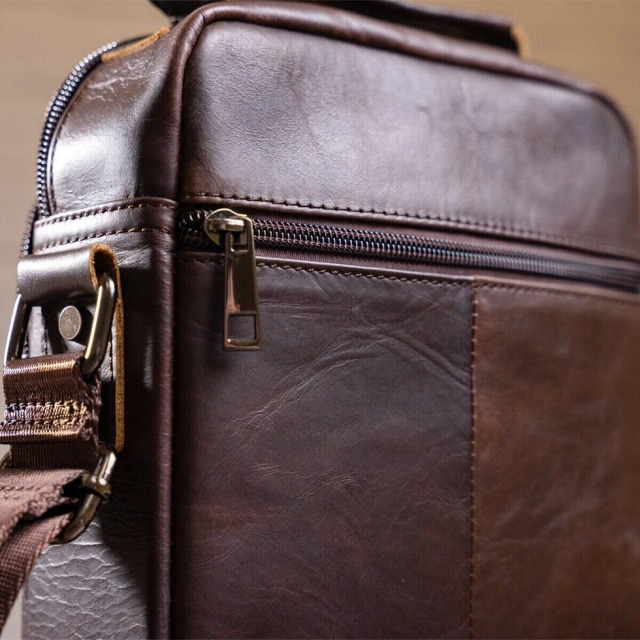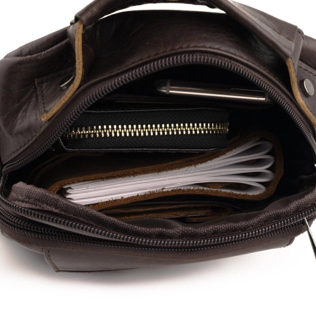 Якісна чоловіча сумка з натуральної шкіри компактного розміру. Виріб ідеально підійде на кожен день. У модель легко помістяться всі необхідні речі. Сумка підкреслить ваше відмінне почуття стилю. Виріб буде ідеальним подарунком для будь-якого чоловіка.