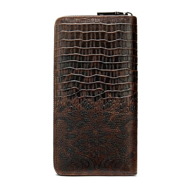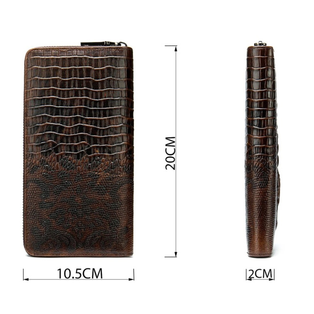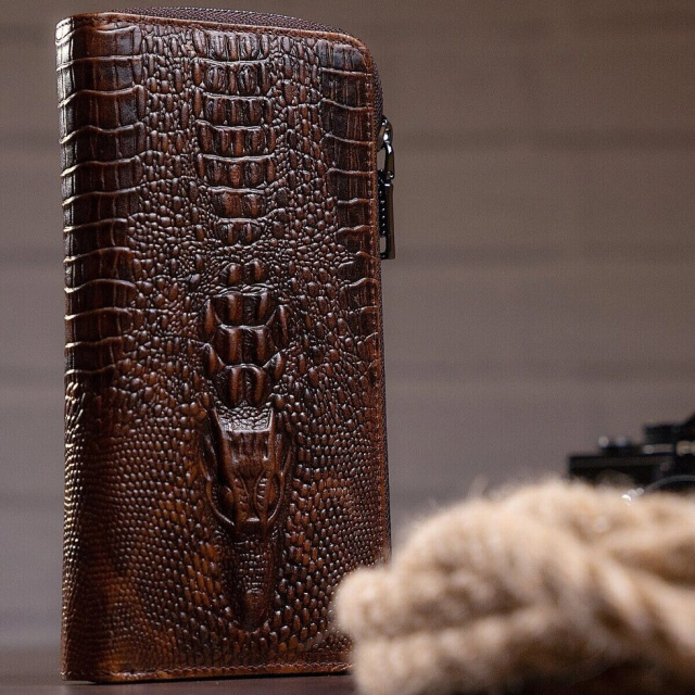 Шкіряний чоловічий клатч з тисненням під екзотику і силуетом каймана. Виріб дуже зручно лежить в руці. Модель доповнена якісною фурнітурою. У клатч з легкістю поміщаються купюри будь-якого розміру, а також ваш смартфон і паспорт. Клатч досить функціональний. Аксесуар дуже стильно і солідно виглядає і ідеально доповнить будь-який ваш образ. Такий аксесуар стане прекрасним подарунком для будь-якого чоловіка.