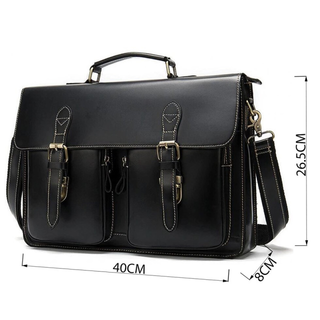 Ефектний діловий портфель для солідного чоловіка. Ідеальний варіант для ділових зустрічей або роботи. Виглядає розкішно і чудово пошитий. Виробництво - фабричний Китай високої якості. Аксесуар виконаний з щільної грубої шкіри приємної на дотик. Портфель зі справжньої якісної шкіри виглядає дуже дорого і зі смаком. Така річ точно прослужить вам не один рік. Портфель закривається на класичні застібки. Аксесуар однозначно вартий своїх грошей і буде радувати вас своєю якістю і зручністю.