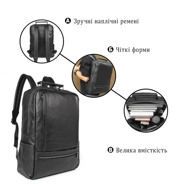 Вмісткий рюкзак для ноутбука з натуральної шкіри з усім необхідним функціоналом. Всередині чорна щільна текстильна підкладка. Рюкзак доповнений якісною фурнітурою. Прекрасний виріб для тих, хто дуже часто возить з собою ноутбук. У такій рюкзак поміститься не тільки ноутбук, але і необхідні вам речі. У рюкзаку простіше буде переносити багато речей або тяжкості. Виконаний виріб з натуральної шкіри прослужить вам значно довше і має високу зносостійкість.