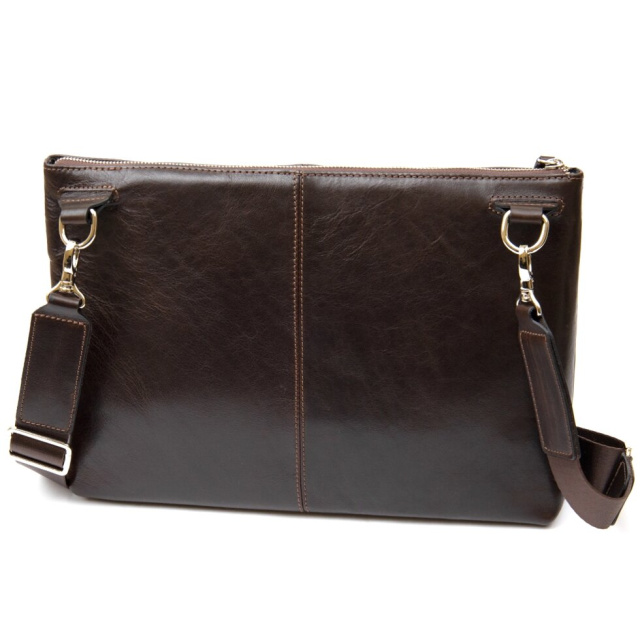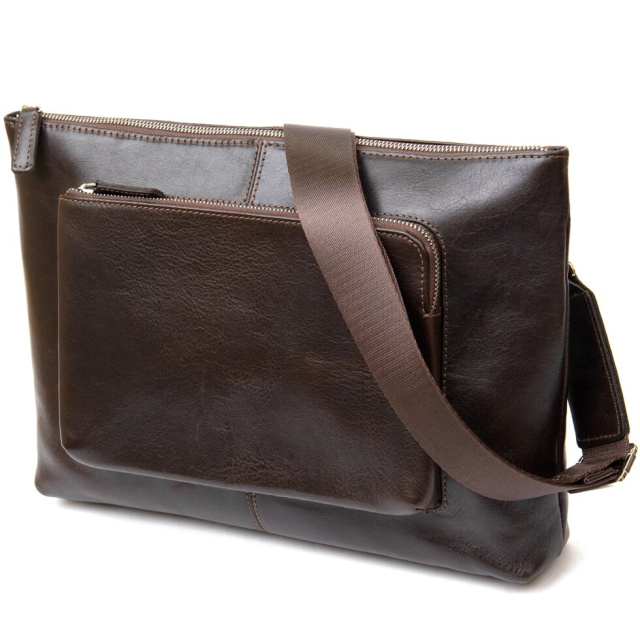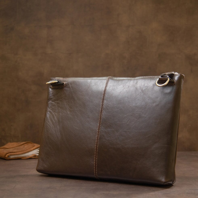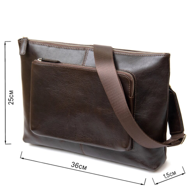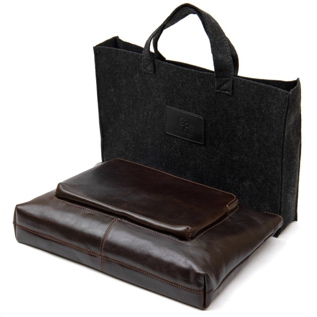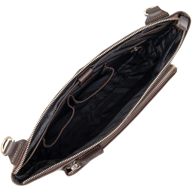 Добротна красива сумка для ноутбука в глянсовому коричневому кольорі. Виконана з натуральної високоякісної шкіри. Закривається сумка на міцну і надійну блискавку, всередині є містке основне відділення і відділення на липучці для ноутбука. Папери А4 з легкістю помістяться в даний аксесуар. Упакована сумка в красивий фірмовий чохол чорного кольору з ручками.